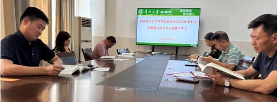 为深入学习贯彻习近平文化思想和《习近平谈治国理政》(第五卷),深刻认识建设文化强国事关中国式现代化建设全局,更好担负起新时代的文化使命,坚持以高质量发展统揽全局、守正创新、扬长补短,着力用党的创新理论凝心铸魂、巩固壮大主流思想舆论、弘扬社会主义核心价值观、加强文化建设和文明新风培育,贵州大学林学院党委理论学习中心组2025年度第七次集中学习于2025年10月13日14:30在崇德楼564会议室进行。林学院党委书记唐飞虎主持会议,林学院正处级组织员邹年娟、副院长韦小丽、粟海军、党委委员吴峰参加。