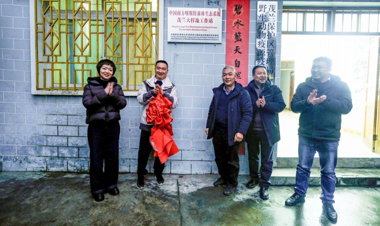 2026年1月4日是新年第一个工作日,为更好地实施贵州第一个森林大样地项目“中国南方喀斯特森林生态系统茂兰大样地”项目,项目负责人安明态教授、参与人粟海军副院长前往大样地所在地荔波县黎明关水族乡参加由贵州大学(林学院、生科院)与贵州茂兰国家级自然保护区管理局共建的”中国南方喀斯特森林生态系统茂兰大样地工作站”揭牌仪式,并与保护区管理局班子成员和技术骨干、黎明关乡党政领导共同举办“中国南方喀斯特森林生态系统茂兰大样地工作站工作联席会议暨茂兰保护区科研工作经验交流会议”,随行参会的还有生命科学学院副院长胡国雄教授、严令斌博士。