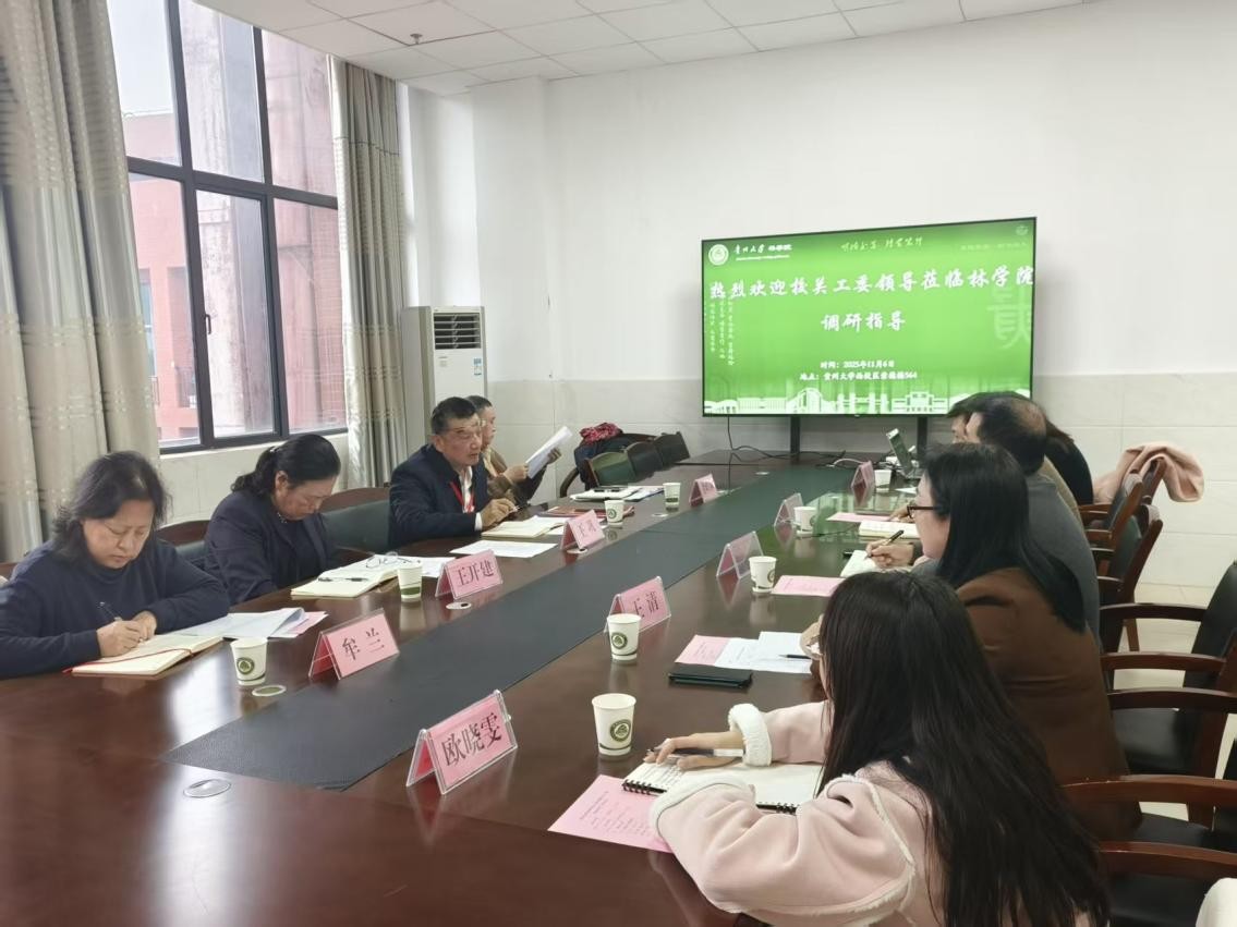 2025年11月6日上午,贵州大学林学院关工委在崇德楼564会议室召开迎接校关工委检查指导工作会议。校关工委副主任王巩、副秘书长王开建、董峰林、牟兰出席会议,林学院关工委主任唐飞虎、副主任陈健、秘书长杨璇、委员王清及学生代表欧晓雯参加会议。此次会议由唐飞虎主任主持。