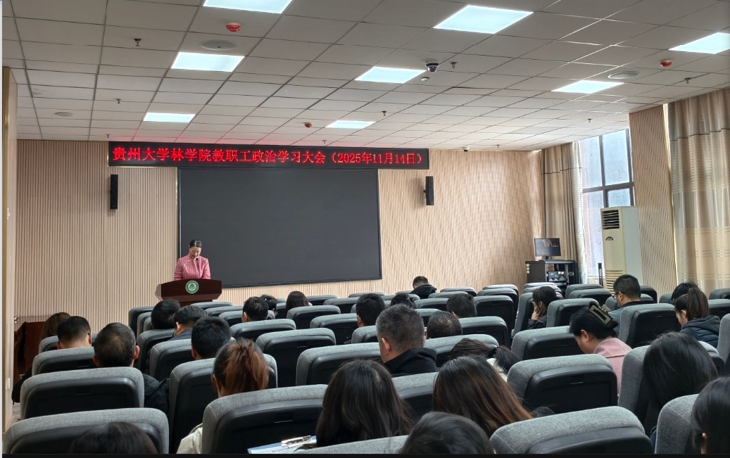 2025年11月14日下午2点30分,林学院在崇德楼570会议室召开了全院教职工政治学习大会。本次会议由林学院正处级组织员邹年娟主持,林学院全体教职工参加了本次会议。